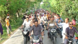 এ সময় আসন্ন দ্বাদশ জাতীয় সংসদ নির্বাচনে নৌকা মার্কায় ভোট চেয়ে ফারজানা রাব্বী বুবলীর নেতৃত্বে বিশাল মোটরসাইকেলের শোভাযাত্রা করা হয়।