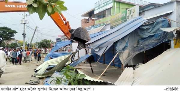 সাপাহারে অবৈধ স্থাপনা উচ্ছেদ