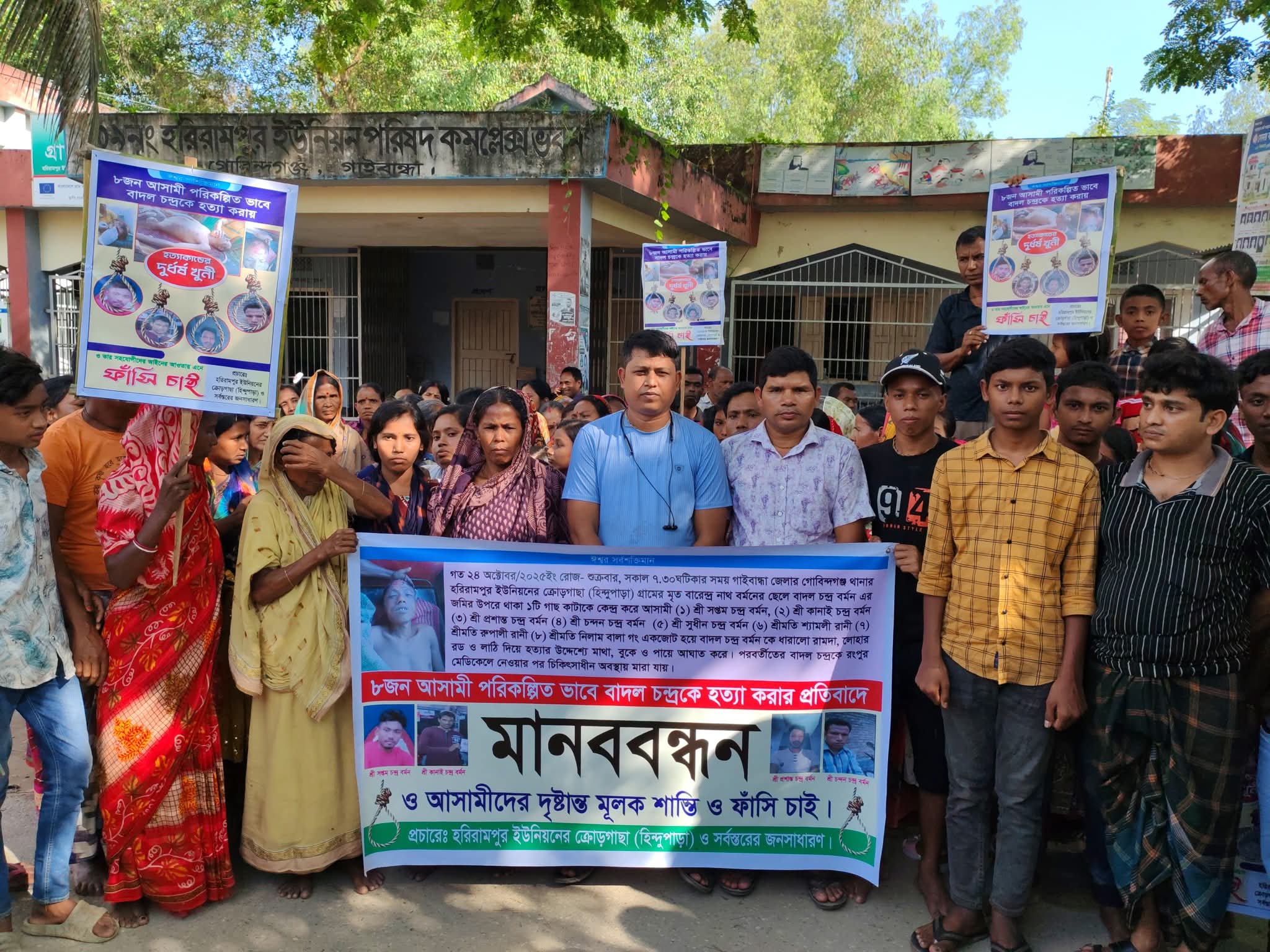 গোবিন্দগঞ্জে বাদল হত্যা মামলার আসামিদের গ্রেপ্তার ও বিচারের দাবীতে মানববন্ধন