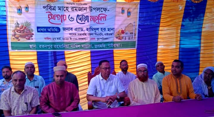 পবিত্র মাহে রমজান উপলক্ষে গাইবান্ধার ফুলছড়ি উপজেলার উড়িয়া ইউনিয়নের রতনপুর গ্রামে স্থানীয়দের আয়োজনে নিজ এলাকাবাসীর সাথে দোয়া ও ইফতার মাহফিলে