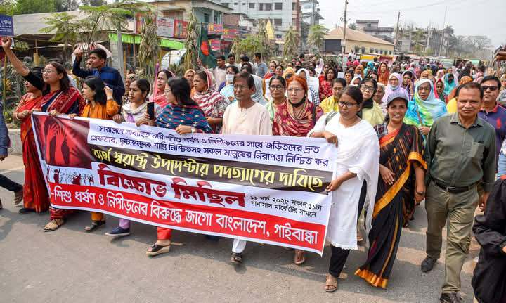 স্বরাষ্ট্র উপদেষ্টার পদত্যাগ এবং অব্যাহত নারী ও শিশু ধর্ষণ- নিপীড়নে দোষীদের দৃষ্টান্তমূলক শাস্তির দাবিতে মিছিলে স্লোগানে স্লোগানে উত্তাল হয়ে ওঠে