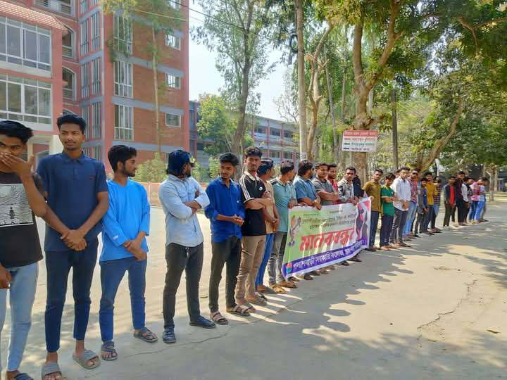 নির্যাতন নীপিড়ন ও ধর্ষণের বিরুদ্ধে পলাশবাড়ীতে ছাত্রদলের মানববন্ধন