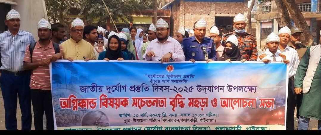 “দুর্যোগের পূর্বাভাস প্রস্তুতি, বাঁচায় প্রাণ ক্ষয়ক্ষতি” এই প্রতিপাদ্যকে সামনে রেখে গাইবান্ধার পলাশবাড়ীতে বিভিন্ন কর্মসূচীর মধ্য দিয়ে জাতীয় দুর্যোগ প্রস্তুতি দিবস