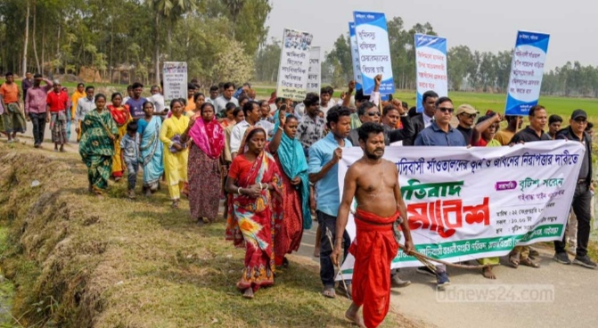 গাইবান্ধার গোবিন্দগঞ্জে সাঁওতালদের ভূমি ও নিরাপত্তার দাবিতে সমাবেশ