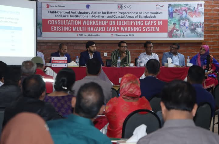 গাইবান্ধার প্রেক্ষাপটে বিদ্যমান বহুমাত্রিক-ঝুঁকির পূর্বাভাস ব্যবস্থার (MHEWS) ঘাটতিগুলো চিহ্নিত ও সমাধানে পরামর্শমূলক কর্মশালার আয়োজন করা হয়েছে। এসকেএস ফাউন্ডেশন বাস্তবায়িত Child-Centered