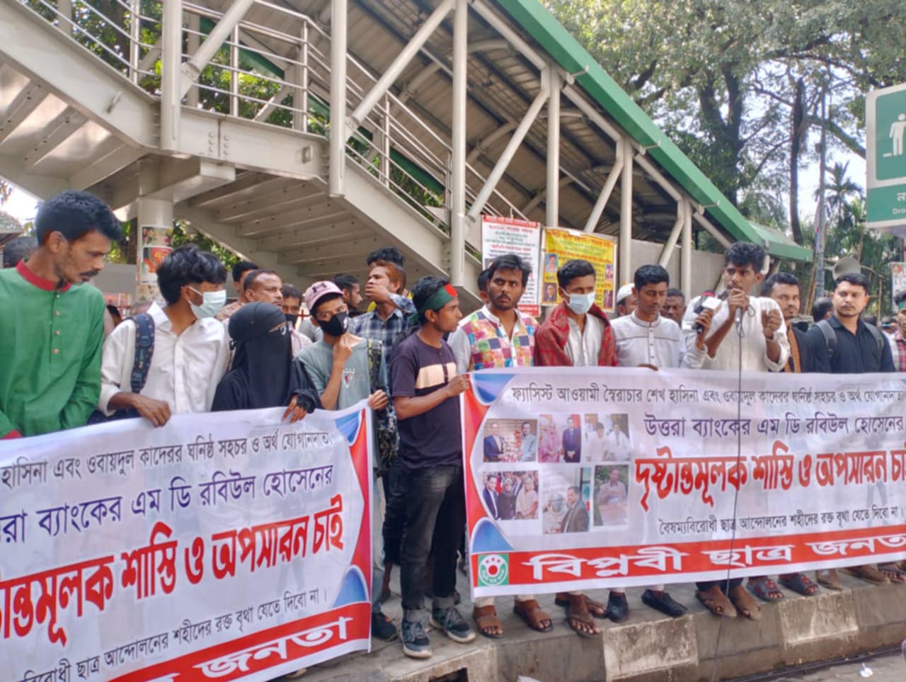 উত্তরা ব্যাংকের এমডি রবিউল ইসলামের অপসারণ ও পদত্যাগের দাবিতে মানববন্ধন