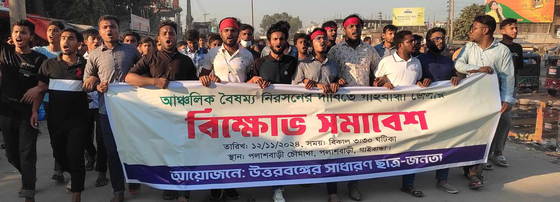 আঞ্চলিক বৈষম্য নিরসনসহ ৩ দফা দাবিতে গাইবান্ধায় ছাত্র-জনতার বিক্ষোভ-সমাবেশ