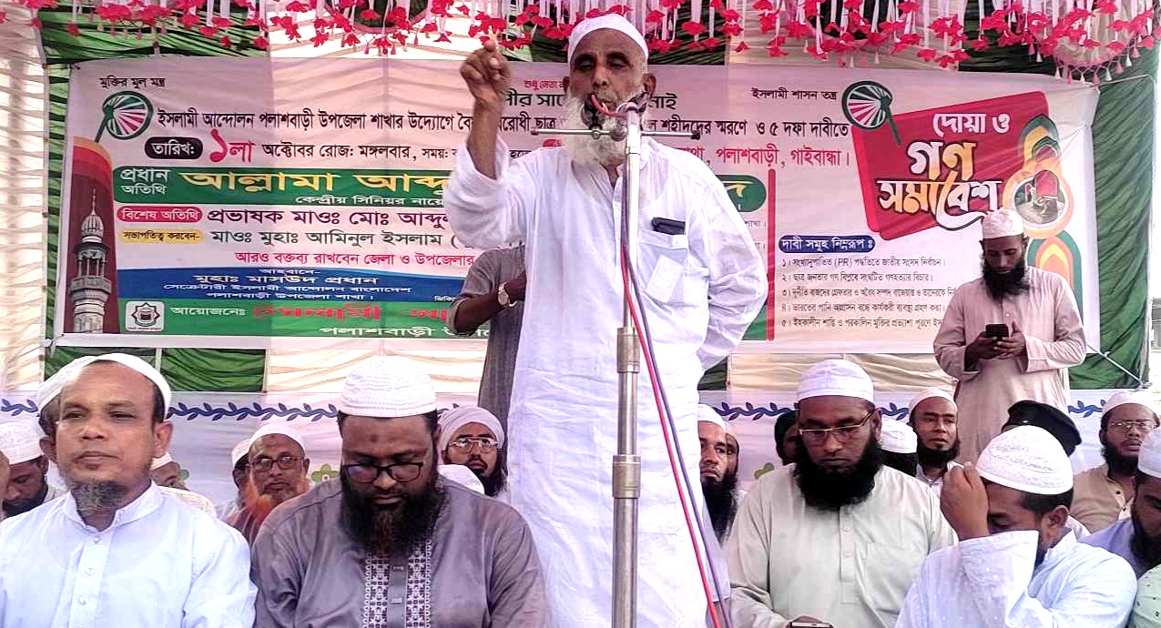 পলাশবাড়ীতে ইসলামী আন্দোলন বাংলাদেশ পলাশবাড়ী উপজেলার শাখার উদ্যোগে ১লা অক্টোবর স্থানীয় চৌমাথা মোড়ে বৈষম্যবিরোধী ছাত্র আন্দোলনে নিহতদের স্মরনে দোয়া ও