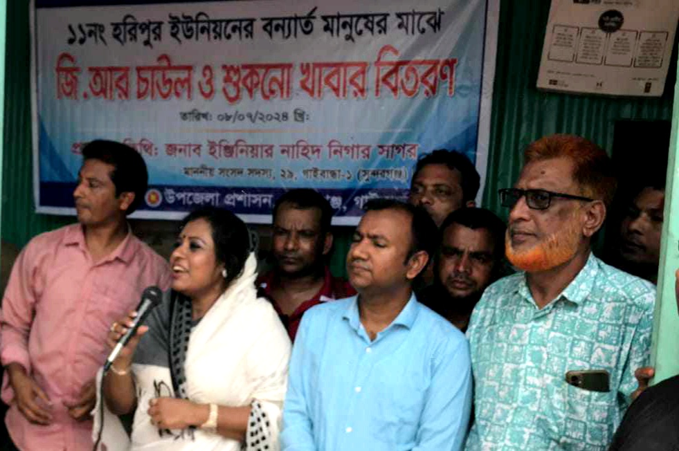 গাইবান্ধায় বন্যা দুর্গতদের মাঝে চাল ও শুকনো খাবার বিতরণ