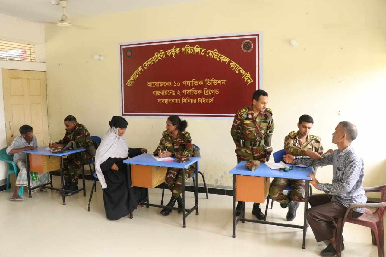 দুস্থ ও অসহায় মানুষের মাঝে সেনাবাহিনীর বিনামূল্যে চিকিৎসা সেবা ও ঔষধ বিতরণ