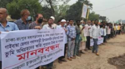 ঢাকা~রংপুর মহাসড়ক চার লেনে উন্নীত করণের লক্ষ্যে গাইবান্ধার পলাশবাড়ী পৌর শহরের প্রাণকেন্দ্র নুনিয়াগাড়ী মৌজার অধিগ্রহণকৃত জমি, স্থাপনা ও অবকাঠামোর টাকা