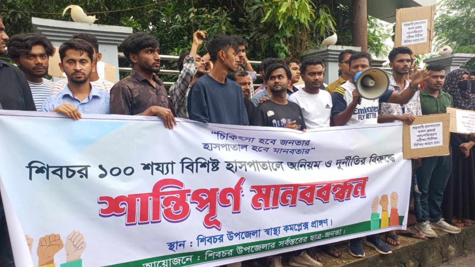 মাদারীপুরের শিবচর উপজেলা স্বাস্থ্য কমপ্লেক্সে অনিয়ম বন্ধে মানববন্ধন করেছেন শিক্ষার্থী ও সাধারণ মানুষ। বৃহস্পতিবার(২২ আগস্ট) সকালে শিবচর উপজেলা স্বাস্থ্য কমপ্লেক্সের