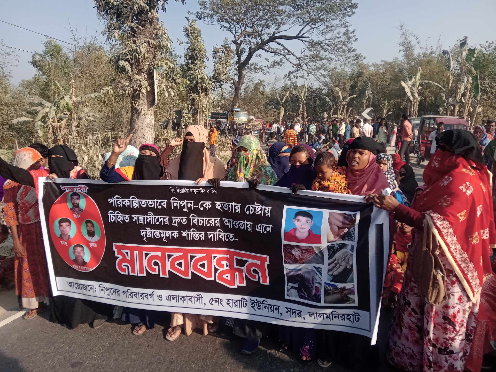 লালমনিরহাটে রিপন হত্যার চেষ্টা মামলার আসামীদের শাস্তির দাবীতে এলাকাবাসীর মানববন্ধন