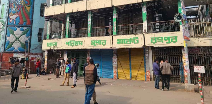 রংপুর চেম্বার অব কমার্স অ্যান্ড ইন্ডাস্ট্রির আয়োজনে করা বাণিজ্য মেলা বন্ধের দাবিতে শহরের সব দোকানপাট ও বিপণিবিতান আধা বেলা বন্ধ