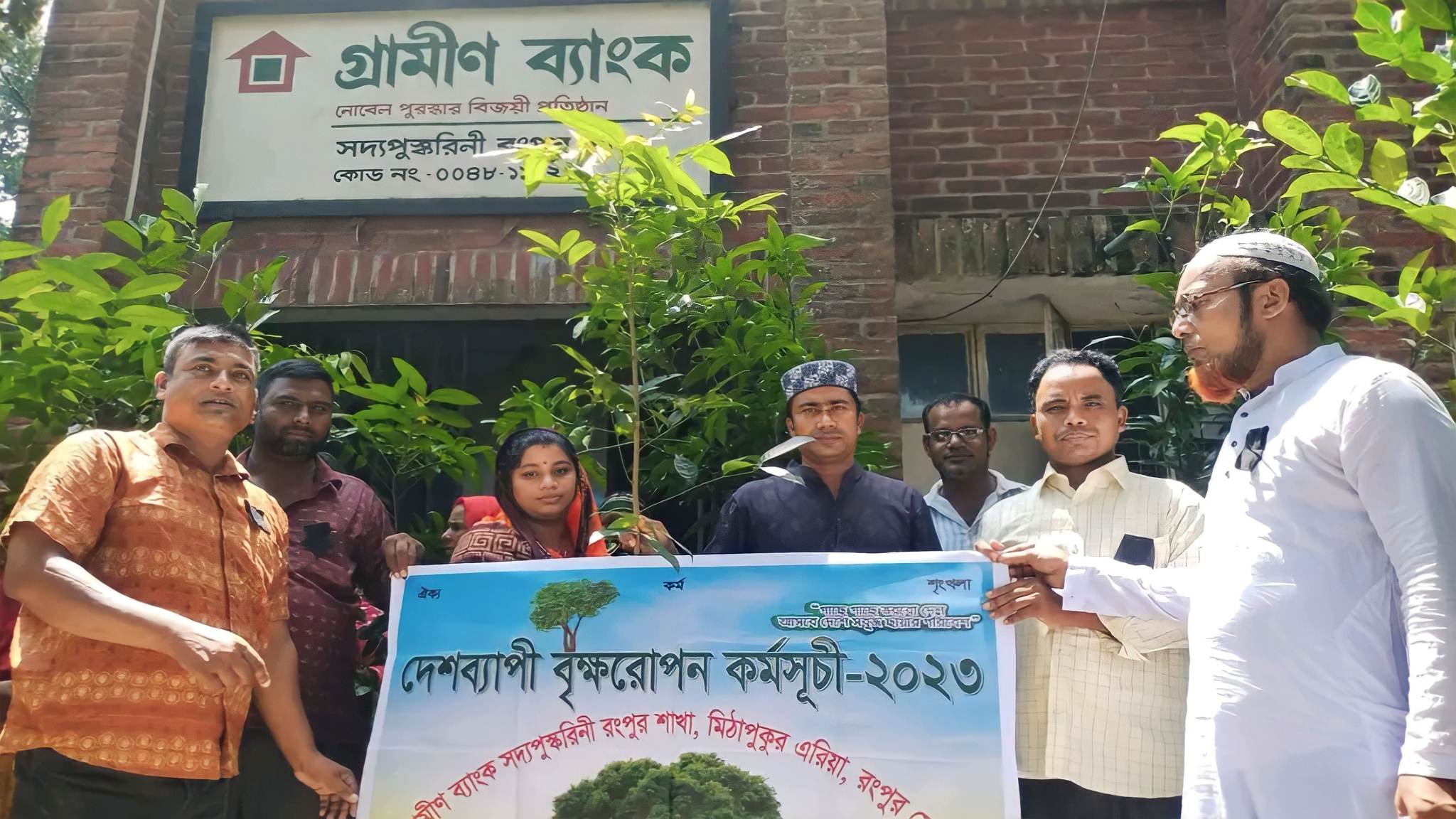 ‘গাছে গাছে ভরবো দেশ, আসবে দেশে সবুজ ছায়ার পরিবেশ’ এ প্রতিপাদ্যকে সামনে রেখে জাতীয় শোক দিবস উপলক্ষে গ্রামীণ ব্যাংকের সদস্যদের