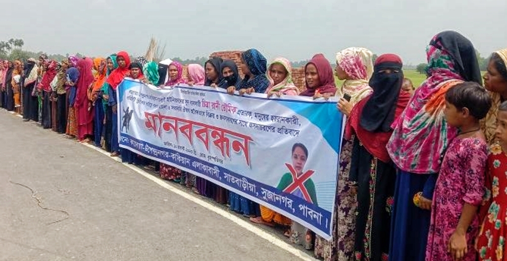 পাবনার সুজানগর উপজেলার সাতবাড়িয়ার কাদোয়া কমিউনিটি ক্লিনিকের কমিউনিটি হেলথ কেয়ার প্রোভাইডার (সিএইচসিপি) চিত্রা রাণী ভৌমিকের শাস্তি চেয়ে মানববন্ধন করেছে এলাকাবাসী।