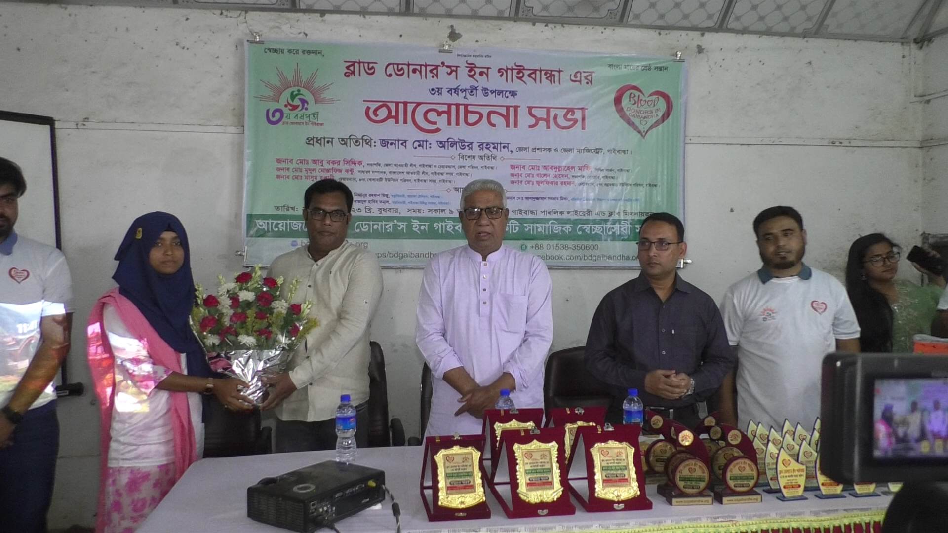 “স্বেচ্ছায় করি রক্ত দান, বাংলা মায়ের শেষ্ট্র সন্তান” এই প্রতিপাদ্য কে সামনে রেখে, ব্লাড ডোনারস ইন গাইবান্ধা এর ৩য় বর্ষপূর্তী