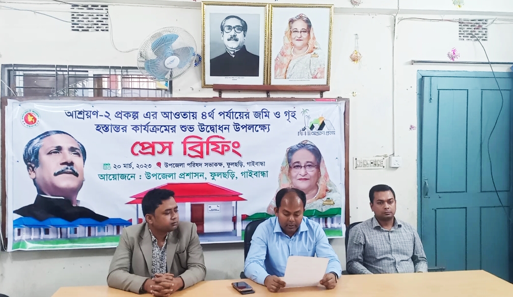 গাইবান্ধার ফুলছড়িতে আশ্রয়ণ-২ প্রকল্প এর আওতায় ৪র্থ পর্যায়ের জমি ও গৃহ হস্তান্তর কার্যক্রমের শুভ উদ্বোধন উপলক্ষ্যে এক প্রেস ব্রিফিং অনুষ্ঠিত
