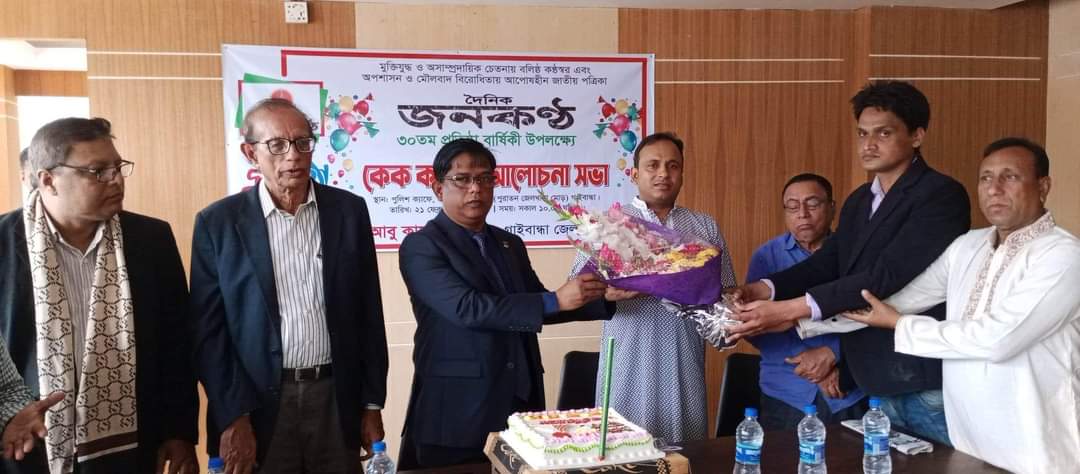 দৈনিক জনকণ্ঠ পত্রিকার ৩০তম প্রতিষ্ঠা বার্ষিকী পালন উপলক্ষে মঙ্গলবার গাইবান্ধা পুলিশ ক্যাফেতে আলোচনা সভা ও কেক কাটা অনুষ্ঠানের আয়োজন করা