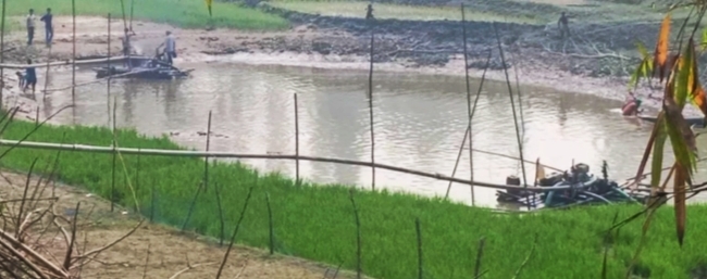 আশ্রয়ন প্রকল্পের নামে অবৈধ ড্রেজার মেশিন দিয়ে শহর রক্ষা বাঁধের নিকট থেকে বালু উত্তোলন