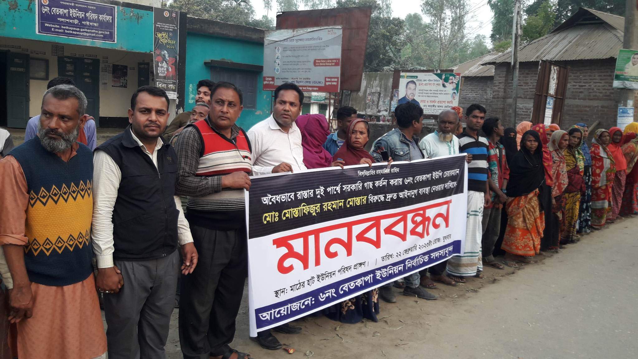 গোপনে গাছ বিক্রির প্রতিবাদে চেয়ারম্যানের বিরুদ্ধে মানববন্ধন