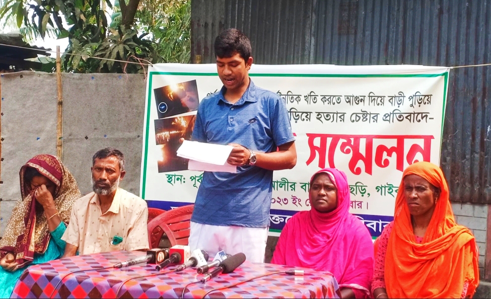 গাইবান্ধার ফুলছড়িতে পূর্বশত্রুতার জেরে রাতের আঁধারে ঘরে পেট্রোল দিয়ে আগুন ধরিয়ে দিয়ে বাড়ি পুড়িয়ে দেওয়ার অভিযোগ।প্রতিকার ও নিরাপত্তা চেয়ে বাড়িতে