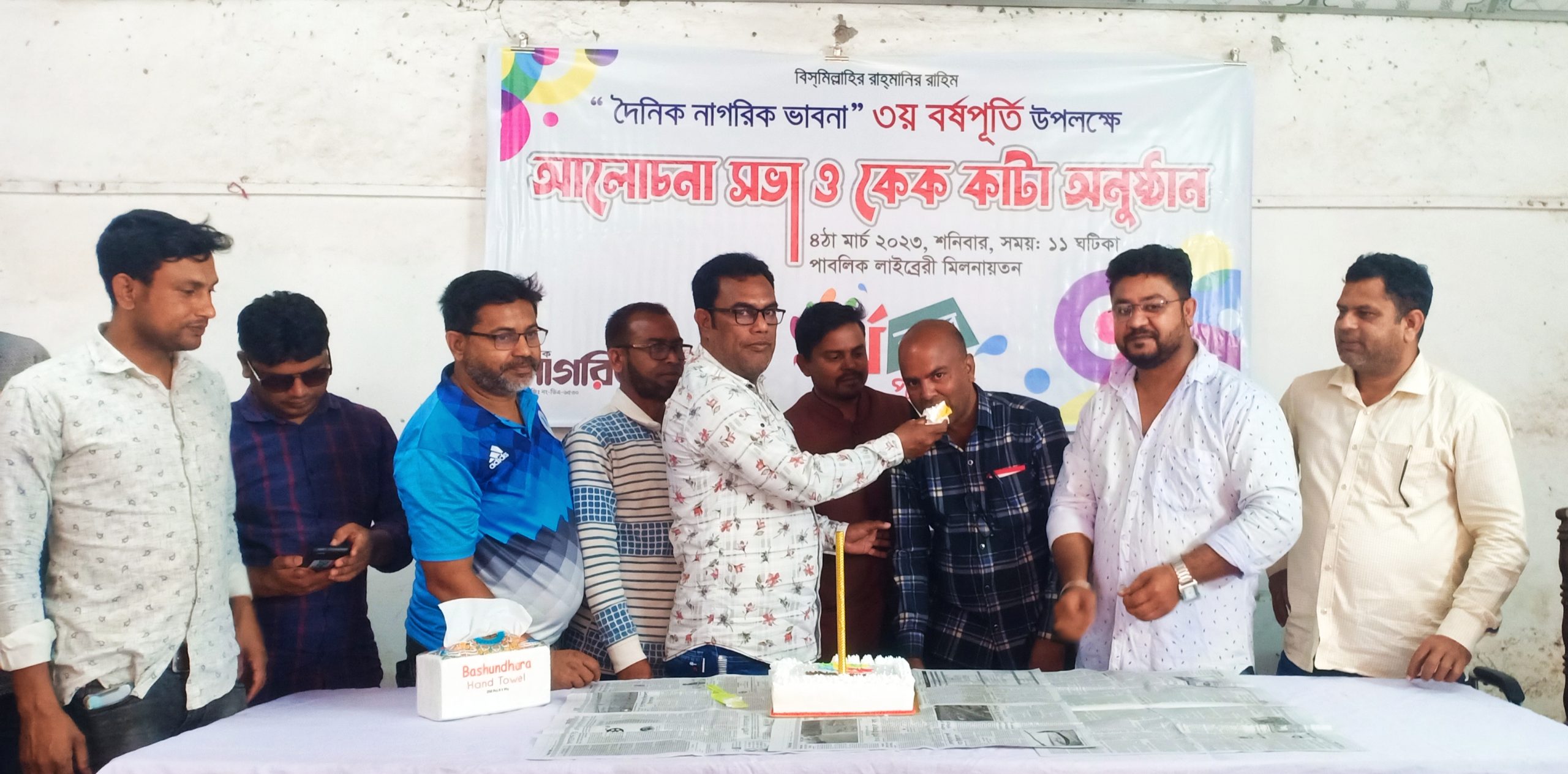 ঢাকা থেকে প্রকাশিত মিডিয়া তালিকা ভুক্ত জাতীয় পত্রিকা “দৈনিক নাগরিক ভাবনা”র ৩ বর্ষপূর্তি ও ৪ বর্ষে পদার্পন উপলক্ষে গাইবান্ধায় কেক