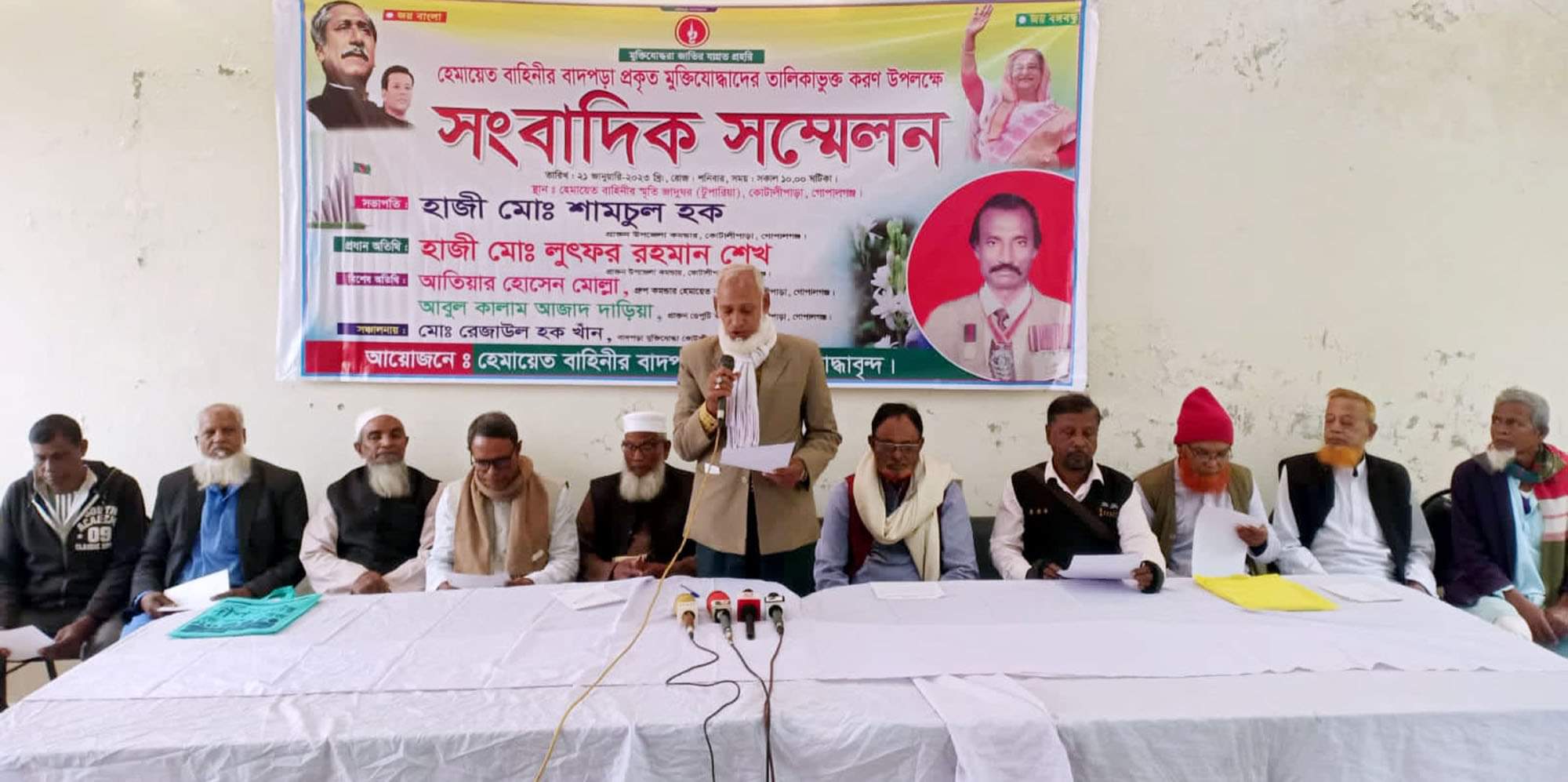 মুক্তিযুদ্ধ বিষয়ক মন্ত্রী আ ক ম মোজাম্মেল হকের ঘোষনার পরে নিজেদেরকে প্রকৃত বীর মুক্তিযোদ্ধা দাবি করে গোপালগঞ্জের কোটালীপাড়া উপজেলায় সংবাদ
