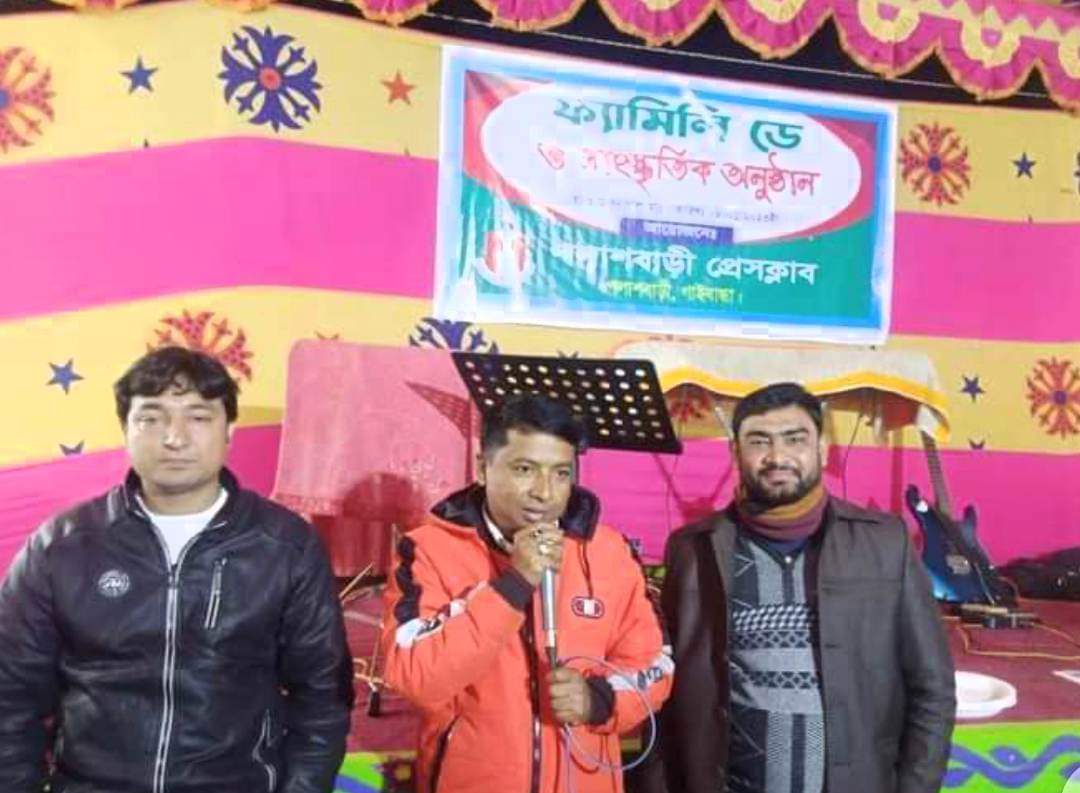 আনন্দঘণ পরিবেশে গণমাধ্যমকর্মীদের পরিবারের সদস্যদের নিয়ে এই প্রথম গাইবান্ধা জেলার পলাশবাড়ী প্রেসক্লাবের আয়োজনে ফ্যামিলি-ডে ও সাংস্কৃতিক অনুষ্ঠান অনুষ্ঠিত হয়েছে। ৮