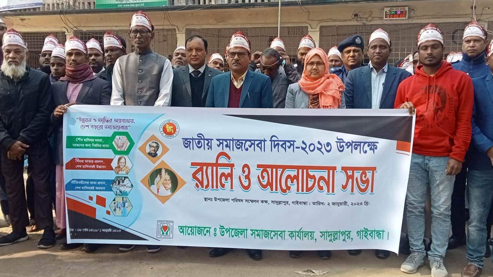 ‘উন্নয়ন ও সমৃদ্ধির অগ্রযাত্রায়; দেশ গড়বো সমাজসেবায়’ এই স্লোগানে জাতীয় সমাজসেবা দিবসে গাইবান্ধার সাদুল্লাপুরে বর্ণাঢ্য শোভাযাত্রা, আলোচনা সভা ও শ্রেষ্ঠ