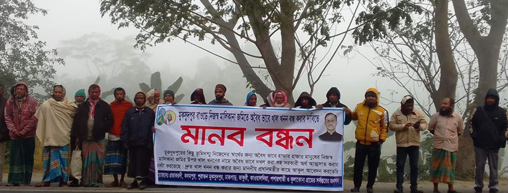 গোপালগঞ্জে মুকসুদপুর বাঁওড়ে খাল খনন বন্ধের দাবিতে মাববন্ধন