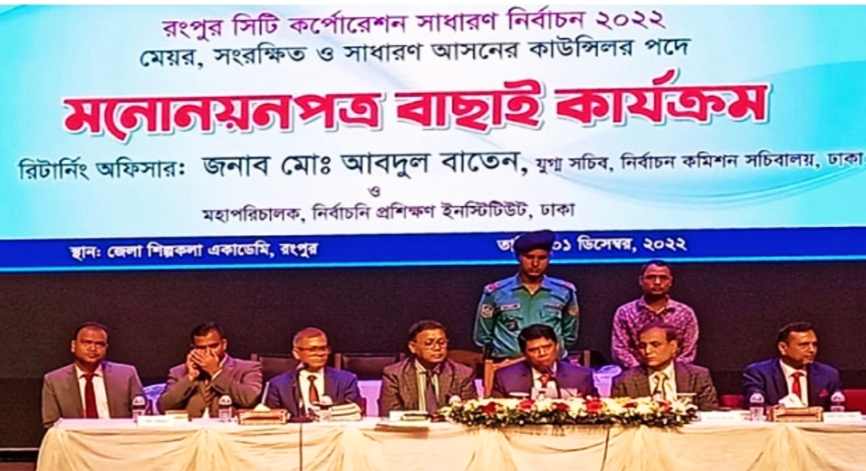 আগামী ২৭ ডিসেম্বর অনুষ্ঠিত হতে যাওয়া রংপুর সিটি করপোরেশন (রসিক) নির্বাচনে মেয়র পদে মোট ১০ জনের মনোনয়ন বৈধ ঘোষণা করেছে