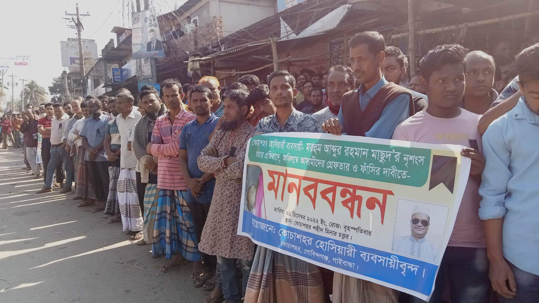 গোবিন্দগঞ্জে হোসিয়ারী ব্যবসায়ী মাসুদ কে নৃশংস হত্যার প্রতিবাদে ও জড়িতদের দ্রুত গ্রেফতার করে ফাঁসির দাবীতে মানববন্ধন অনুষ্ঠিত