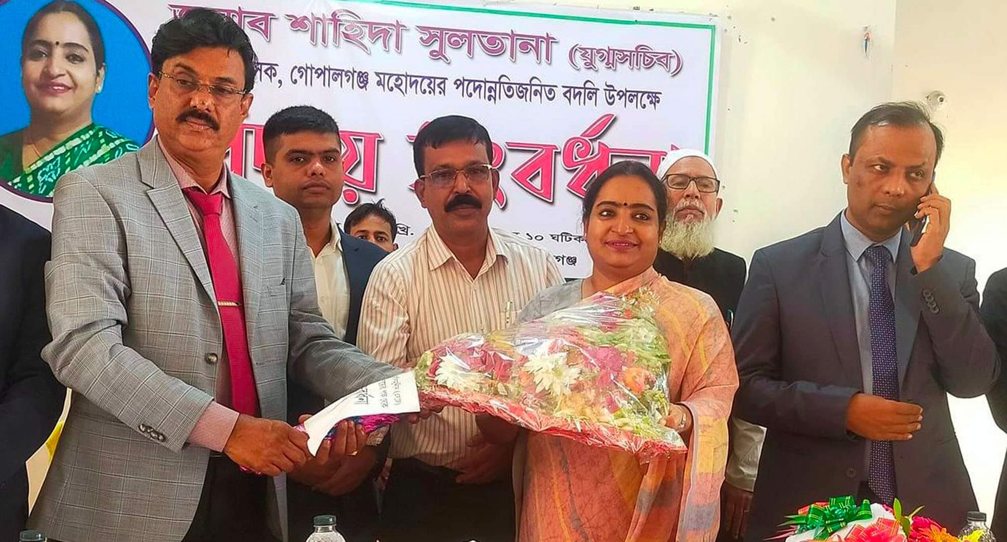 গোপালগঞ্জ জেলা প্রশাসক সাহিদা সুলতানার পদোন্নতিজনিত বদলি উপলক্ষে বিদায় সংবর্ধনা দেয়া হয়েছে। মুকসুদপুর উপজেলা প্রশাসনের আয়োজনে এ বিদায় সংবর্ধনা দেয়া