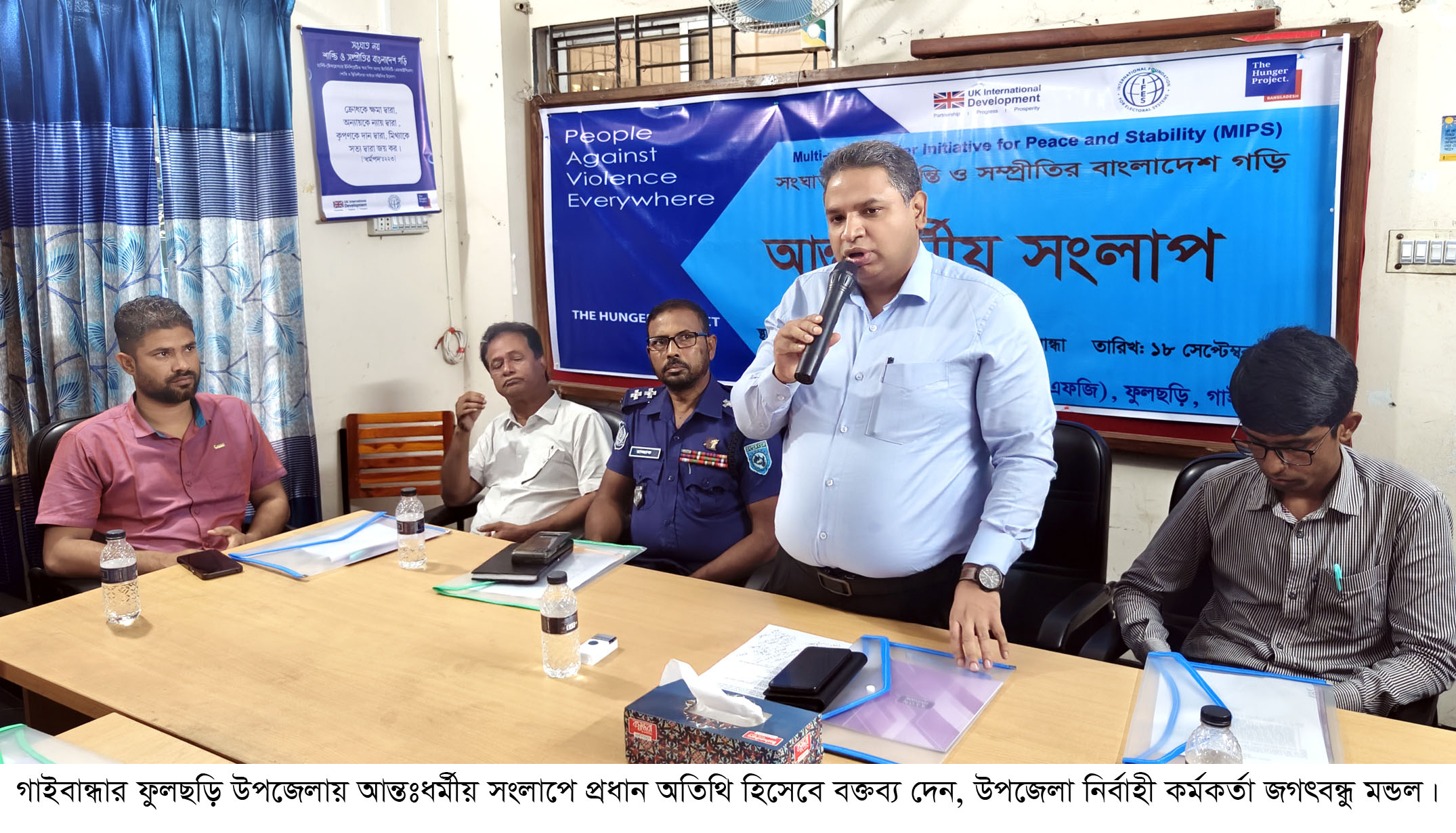 ‘সংঘাত নয়, শান্তি সম্প্রীতির বাংলাদেশ গড়ি’ এই প্রতিপাদ্যকে সামনে রেখে গাইবান্ধার ফুলছড়ি উপজেলায় আন্তঃধর্মীয় সংলাপ অনুষ্ঠিত হয়েছে। এতে উপজেলায় শান্তি-সম্প্রীতি