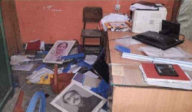 বগুড়ার আদমদীঘিতে ইউনিয়ন পরিষদ কার্যালয়ে হামলা,লুটপাট ও ভাঙচুর।