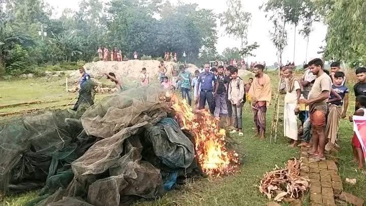 সাঘাটায় শয়তান জালের বিরুদ্ধে উপজেলা প্রশাসনের অভিযান