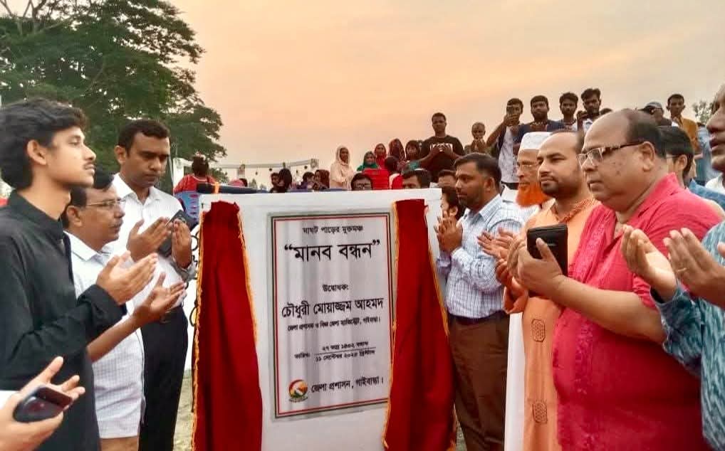 গাইবান্ধায় ঘাঘট পাড়ের উদ্বোধন হলো মুক্তমঞ্চ মানব বন্ধন।