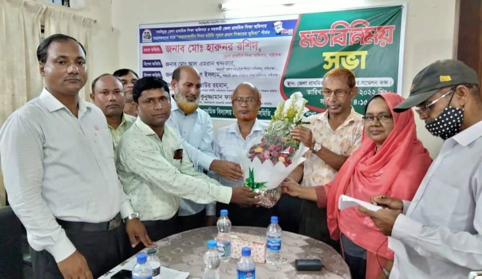 গাইবান্ধায় নবনিযুক্ত জেলা প্রাথমিক শিক্ষা অফিসার ও সহকারী শিক্ষক অফিসারদের সাথে সরকারি প্রাথমিক বিদ্যালয়ের প্রধান শিক্ষক সমিতির নেতাদের সাথে “করোনাকালীন