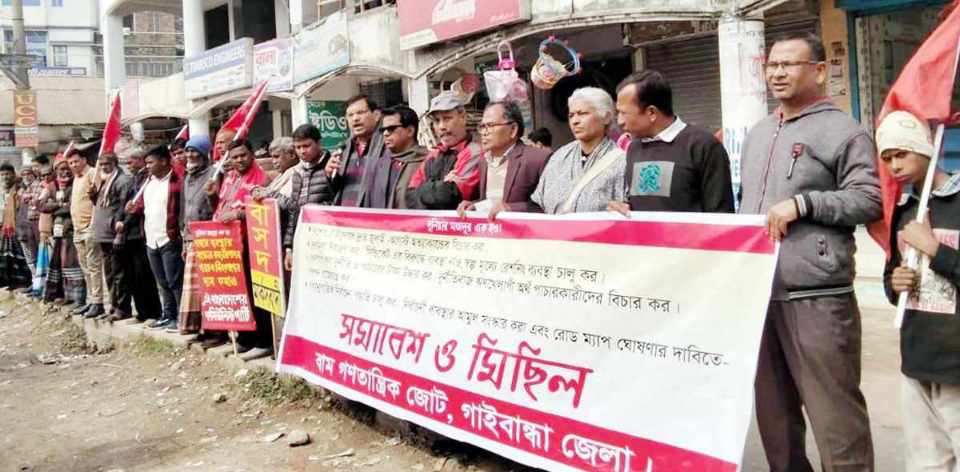 বর্ধিত ভ্যাট প্রত্যাহার, সিন্ডিকেট ভেঙ্গে দিয়ে দ্রব্যমূল্য নিয়ন্ত্রণ, বিচার বহির্ভূত হত্যাকান্ড বন্ধসহ বিভিন্ন দাবিতে বাম গণতান্ত্রিক জোট গাইবান্ধা জেলা শাখার