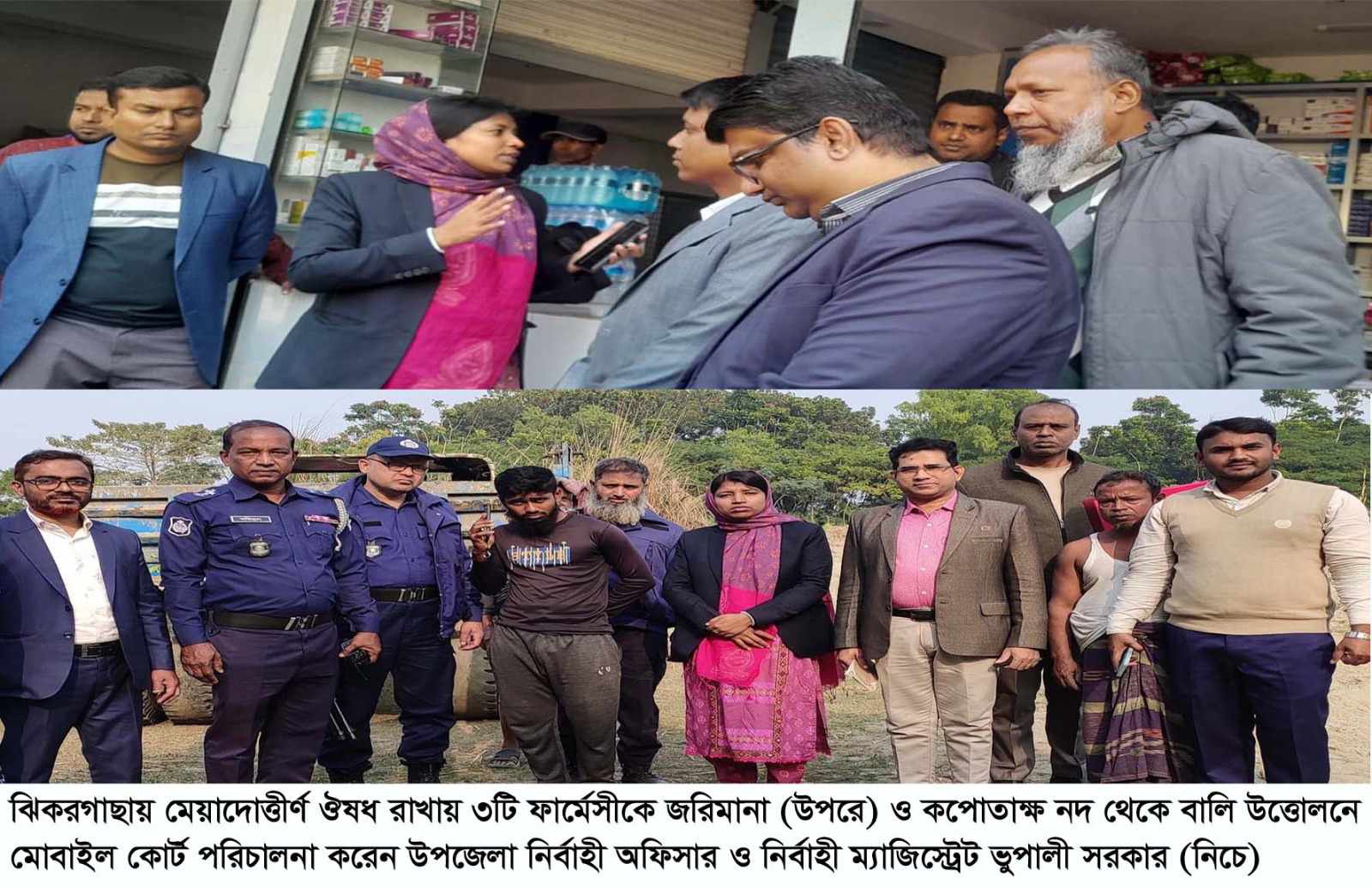যশোরের ঝিকরগাছায় মেয়াদোত্তীর্ণ ঔষধ রাখায় ৩টি ফার্মেসীকে মোবাইল কোর্টে ৩০হাজার টাকা জরিমানা করছেন উপজেলা নির্বাহী অফিসার ও নির্বাহী ম্যাজিস্ট্রেট ভুপালী