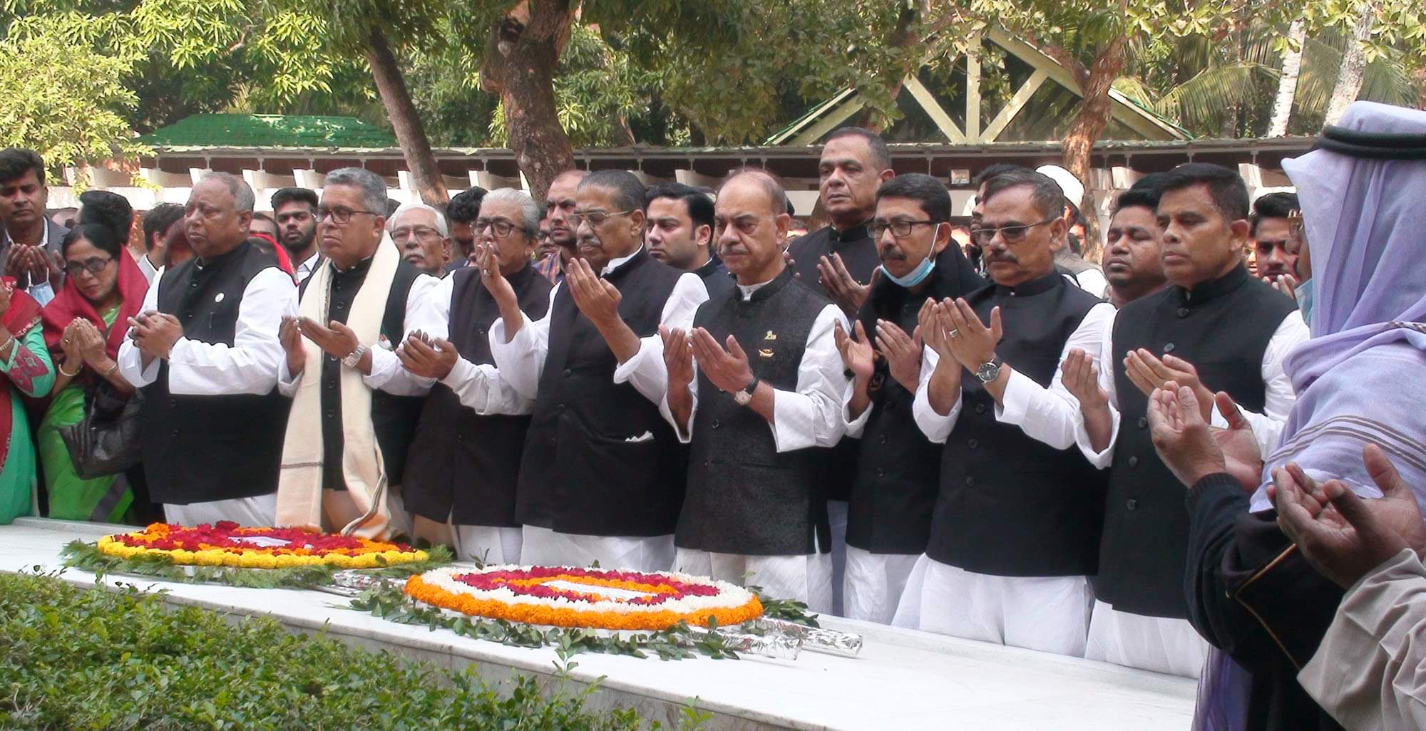 জাতির জনকের সমাধিতে কেন্দ্রীয় আওয়ামী লীগের নেতৃবৃন্দের শ্রদ্ধা