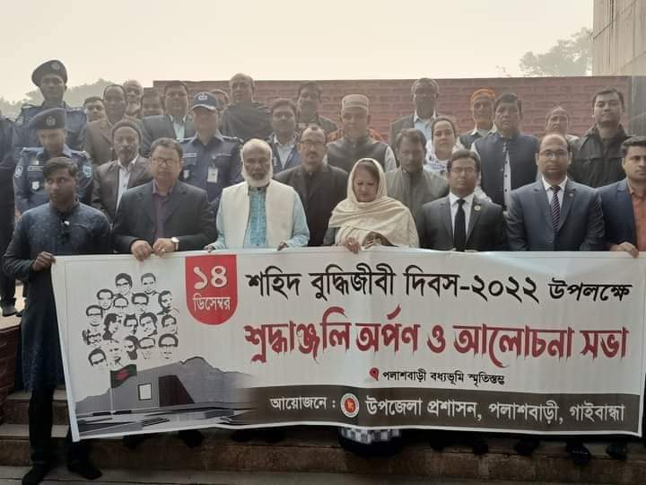 গাইবান্ধা জেলার পলাশবাড়ী উপজেলা প্রশাসনের আয়োজনে ১৪ই ডিসেম্বর শহীদ বুদ্ধিজীবি দিবস পালিত হয়েছে। আজ বুধবার পলাশবাড়ী পৌর এলাকার সিএন্ডবি অফিসের