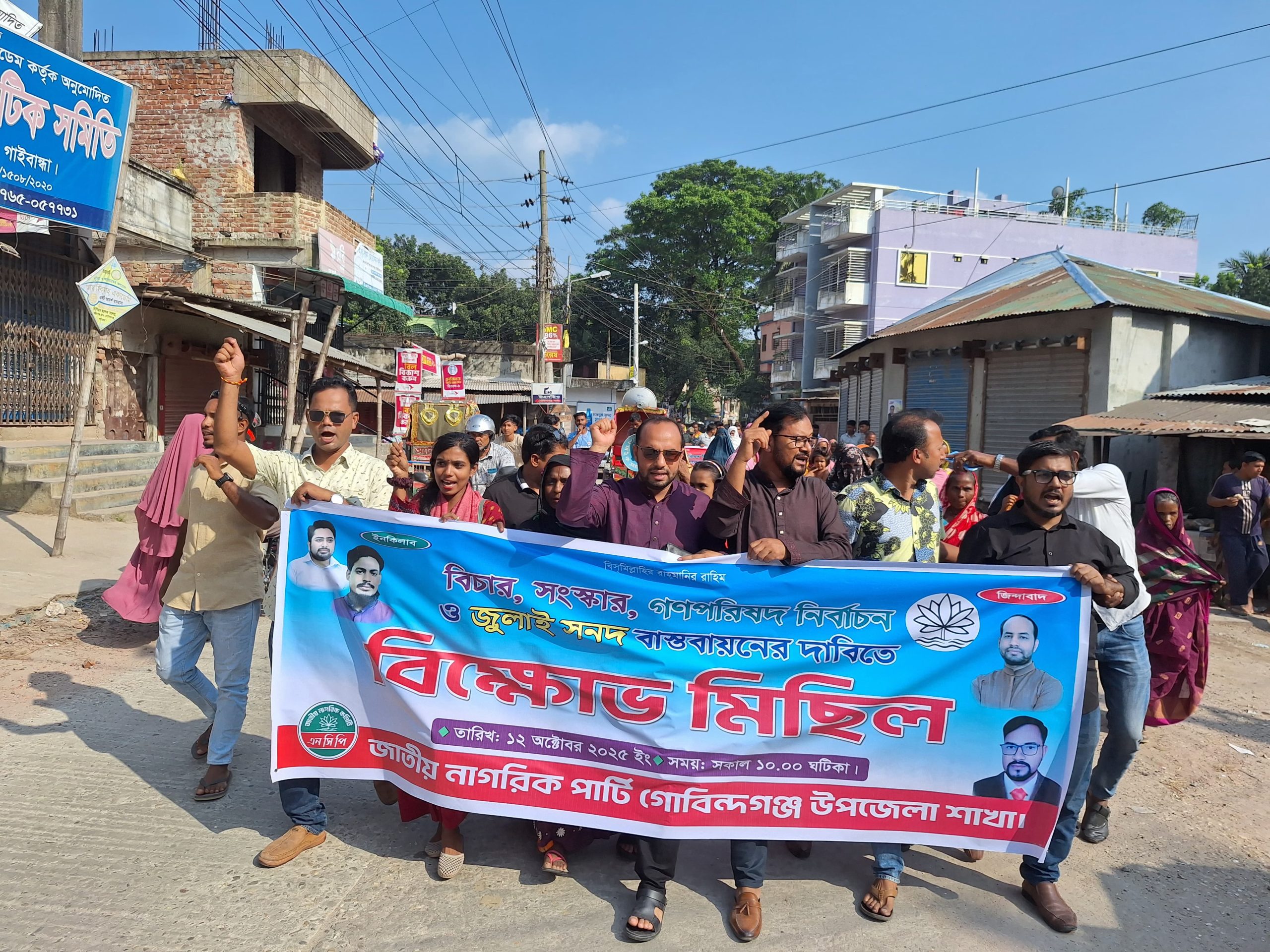 গোবিন্দগঞ্জে এনসিপির ৪ দাবী বাস্তবায়নে বিক্ষোভ মিছিল অনুষ্ঠিত