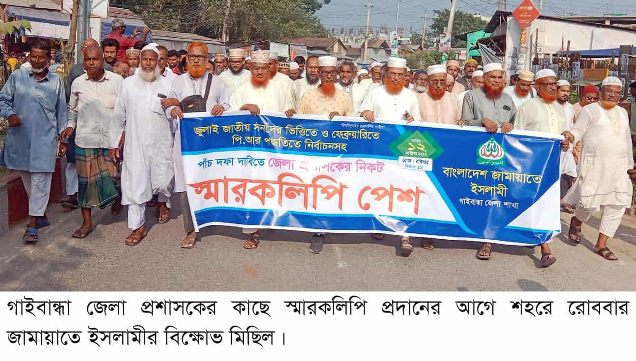 ৫ দফা দাবিতে গাইবান্ধায় জামায়াতে ইসলামীর বিক্ষোভ ও স্মারকলিপি প্রদান