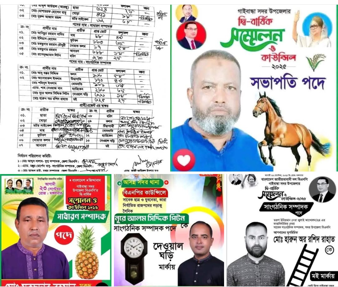 গাইবান্ধা সদর উপজেলা বিএনপির দ্বি-বার্ষিক কাউন্সিল দীর্ঘ ৯ বছর পর অনুষ্ঠিত হয়েছে। সভাপতি, সাধারণ সম্পাদক ও সাংগঠনিক সম্পাদক পদে মোট