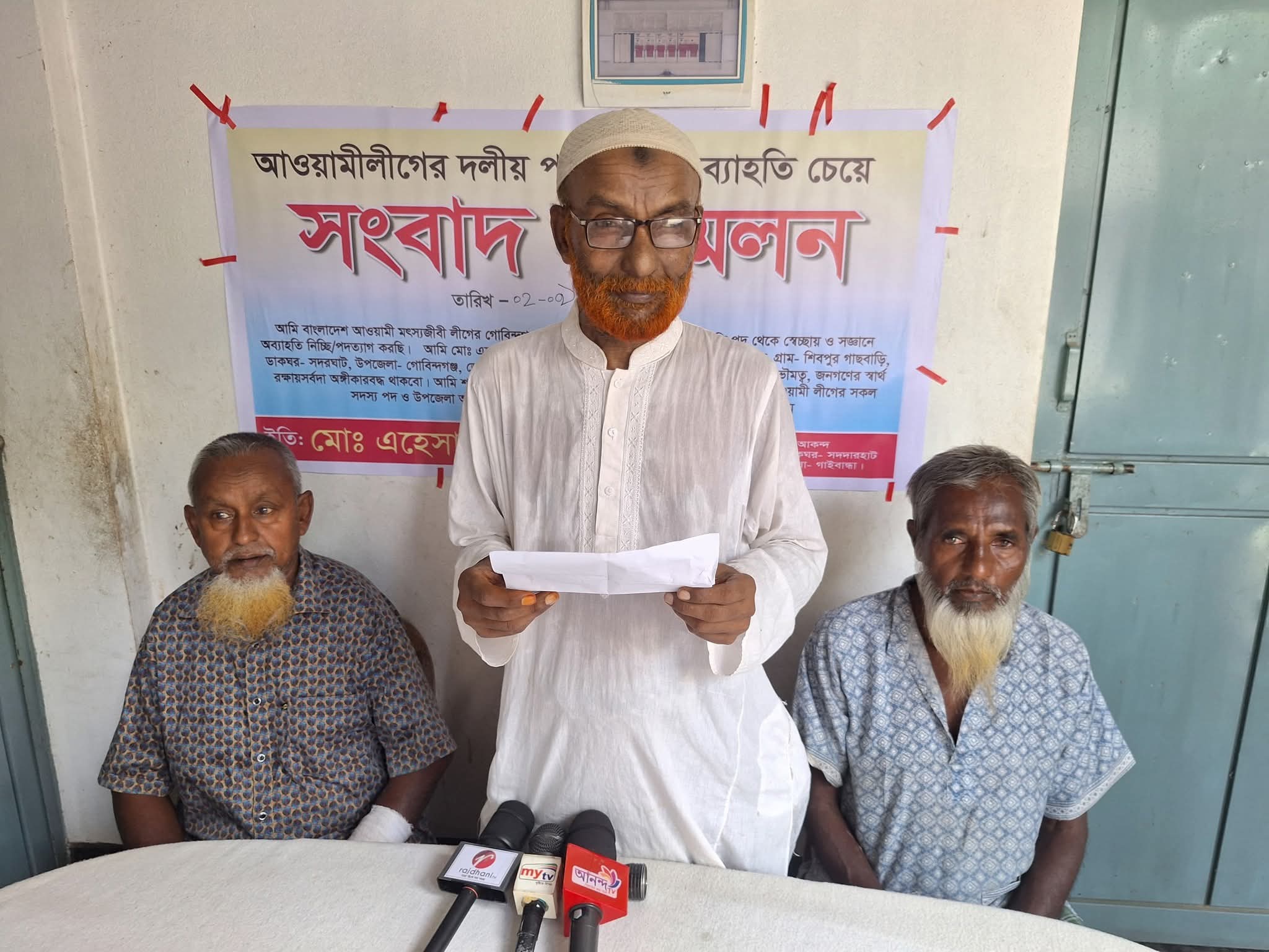 গাইবান্ধার গোবিন্দগঞ্জে বাংলাদেশ আওয়ামী মৎস্যজীবী লীগের উপজেলা সভাপতি পদসহ দলীয় সব সদস্য পদ থেকে অব্যাহতি চেয়ে সংবাদ সম্মেলন করেছেন