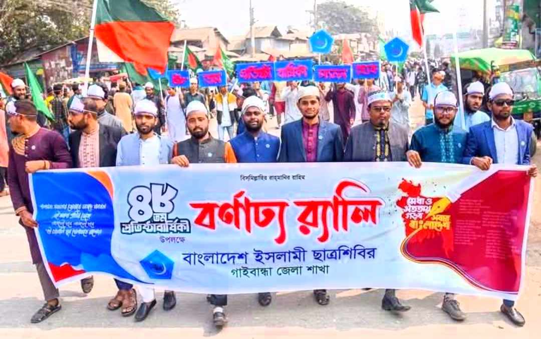 গাইবান্ধায় ইসলামী ছাত্র শিবিরের প্রতিষ্ঠা বার্ষিকীতে বর্ণাঢ্য র্যালি
